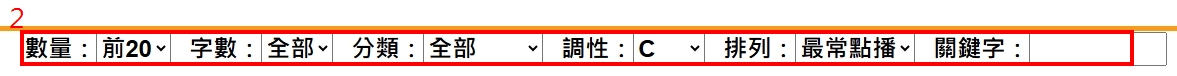 2. 複合式搜尋樂曲。條件一但發生變化會立即回應搜尋結果。關鍵字欄位輸入後請按Enter。