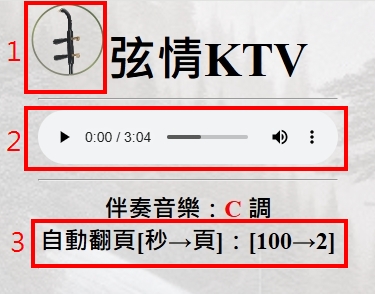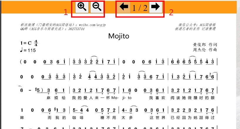 1. 放大、縮小樂譜。使用電腦時建議將瀏覽器無邊框(F11)可以得到最大的樂譜可見高度。